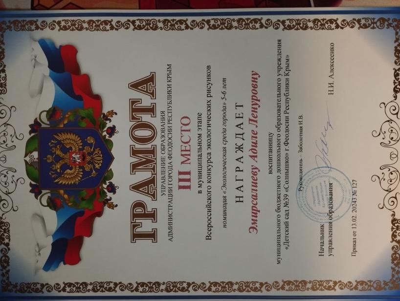 Место работы: Муниципальное бюджетное дошкольное образовательное учреждение «Детский сад №39 «СОЛНЫШКО» г.Феодосии Республики Крым»